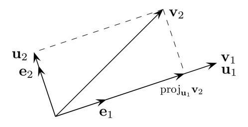 | Keywords: Gram–Schmidt process.svg Steps in Gram Schmidt process 2006-03-07 own assumed Gustavb Source Created by Gustavb using PSTricks Gram Schmidt process tex PSTricks source <pre> \TeXtoEPS \psset linecolor black linewidth 1pt arrowsize 8pt \psset unit 2cm linewidth 8pt \pspicture -1 1 - 2 3 6 2 2 \psline -> 0 0 3 1 u1 \psline -> 0 0 2 2 v2 \psline -> 0 0 2 4 8 proj u1 v2 \psline -> 0 0 - 4 1 2 u2 \psline -> 0 0 9486832980 3162277660 e1 \psline -> 0 0 - 3162277660 9486832980 e2 \psset linestyle dashed dashadjust false linewidth 5pt \pslinedash 12 1 2 2 2 4 8 \pslinedash 12 1 2 2 - 4 1 2 \uput 6pt 315 3 1 \psscalebox 1 6 \bf u _1 \uput 4pt 25 3 1 \psscalebox 1 6 \bf v _1 \uput 6pt 335 2 2 \psscalebox 1 6 \bf v _2 \uput 12pt 265 2 4 8 \psscalebox 1 2 \rm proj _ \bf u _1 \bf v _2 \uput 6pt 200 - 4 1 2 \psscalebox 1 6 \bf u _2 \uput 10pt 270 9486832980 3162277660 \psscalebox 1 6 \bf e _1 \uput 6pt 220 - 3162277660 9486832980 \psscalebox 1 6 \bf e _2 \endpspicture \endTeXtoEPS \nopagenumbers \end </pre> Instructions Create EPS <br><pre> tex Gram-Schmidt_process tex dvips -E Gram-Schmidt_process dvi</pre> Outline fonts <br><pre> eps2eps -dNOCACHE Gram-Schmidt_process ps Gram-Schmidt_process2 eps</pre> Fix bounding box <br><pre> ps2epsi Gram-Schmidt_process2 eps Gram-Schmidt_process eps</pre> Convert to Sketch <br><pre> pstoedit -f sk Gram-Schmidt_process eps Gram-Schmidt_process sk</pre> Convert to SVG <br><pre> skconvert Gram-Schmidt_process sk Gram-Schmidt_process svg</pre> Fix <tt>Gram-Schmidt_process svg</tt> with Inkscape Numerical analysis Vector diagrams |