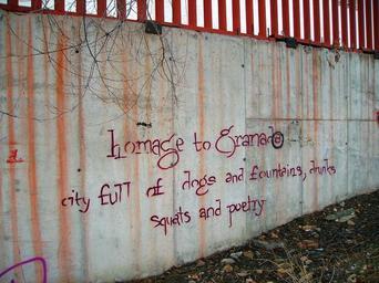 Keywords: Granada English Graffiti near San Miguel Alto.JPG English Graffiti near San Miguel Alto Own 2009-09 Giorgiomonteforti Own work all rights released Public domain Graffiti in Granada