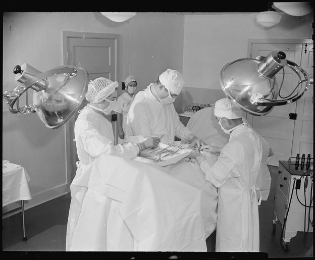 | Keywords: Granada Relocation Center, Amache, Colorado. In one of the two hospital operating rooms at the cent . . . - NARA - 539000.tif Scope and content The full caption for this photograph reads Granada Relocation Center Amache Colorado In one of the two hospital operating rooms at the center Doctor Gerald A Duffy resident physician assisted by chief resident Japanese physician Doctor S Yamada performs an emergency appendectomy General notes 539000 Local identifier 210-G-E420 Department of the Interior War Relocation Authority 02/16/1944 - 06/30/1946 NARA-Author Parker Tom Photographer 4682167 <br /> Still Picture Records Section Special Media Archives Services Division NWCS-S National Archives at College Park 8601 Adelphi Road College Park MD 20740-6001 1942-12-08 Record group Record Group 210 Records of the War Relocation Authority 1941 - 1989 Record group ARC 537 Central Photographic File of the War Relocation Authority compiled 1942 - 1945 Series ARC 536000 File unit File unit ARC Variant control numbers NAIL Control Number NWDNS-210-G-E420 yes Other versions <gallery> File Granada_Relocation_Center _Amache _Colorado _In_one_of_the_two_hospital_operating_rooms_at_the_cent_ _ _ _-_NARA_-_539000 tif tif File Granada_Relocation_Center _Amache _Colorado _In_one_of_the_two_hospital_operating_rooms_at_the_cent_ _ _ _-_NARA_-_539000 jpg jpg </gallery> NARA-cooperation PD-USGov Granada War Relocation Center NARA TIF images with categorized JPGs |