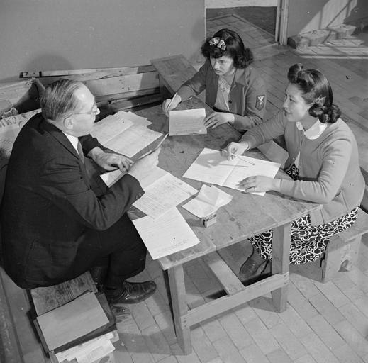 Keywords: Granada Relocation Center, Amache, Colorado. Miss Mary Saito and Miss Alice Yamaoka, young Nisei re . . . - NARA - 539285.jpg Scope and content The full caption for this photograph reads Granada Relocation Center Amache Colorado Miss Mary Saito and Miss Alice Yamaoka young Nisei residents at the Granada Relocation Center register for defense employment with the assistance of Mr Moon War Relocation Authority Employment Division Representative The United States Army and the War Relocation Authority instigated the registration which is a step towards the use of loyal Nisei manpower in the war effort General notes 539285 Local identifier 210-G-E752 Department of the Interior War Relocation Authority 02/16/1944 - 06/30/1946 NARA-Author Parker Tom Photographer 4682167 <br /> Still Picture Records Section Special Media Archives Services Division NWCS-S National Archives at College Park 8601 Adelphi Road College Park MD 20740-6001 1943-02-12 Record group Record Group 210 Records of the War Relocation Authority 1941 - 1989 Record group ARC 537 Central Photographic File of the War Relocation Authority compiled 1942 - 1945 Series ARC 536000 File unit File unit ARC Variant control numbers NAIL Control Number NWDNS-210-G-E752 Other versions <gallery> File Granada_Relocation_Center _Amache _Colorado _Miss_Mary_Saito_and_Miss_Alice_Yamaoka _young_Nisei_re_ _ _ _-_NARA_-_539285 tif tif File Granada_Relocation_Center _Amache _Colorado _Miss_Mary_Saito_and_Miss_Alice_Yamaoka _young_Nisei_re_ _ _ _-_NARA_-_539285 jpg jpg </gallery> NARA-cooperation PD-USGov Granada War Relocation Center
