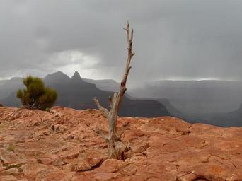 Keywords: grand canyon gorge tree thunderstorm storm rock clouds rain