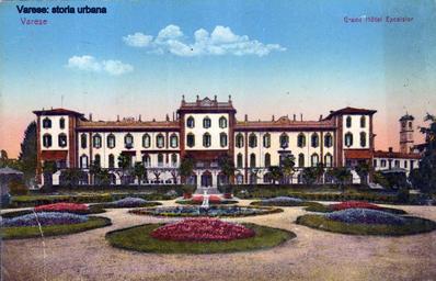 | Keywords: varese casbeno grand hotel excelsior grandhotelexcelsior outdoor architecture building Versione colorata. Immagine del giardino e del Grand Hotel Excelsior, aperto nel 1874 trasformando profondamente la villa appartenuta alla famiglia Recalcati. A destra si intravede il vecchio campanile della chiesa di San Vittore (abbattuto nel 1932). Versione colorata. Immagine del giardino e del Grand Hotel Excelsior, aperto nel 1874 trasformando profondamente la villa appartenuta alla famiglia Recalcati. A destra si intravede il vecchio campanile della chiesa di San Vittore (abbattuto nel 1932). |