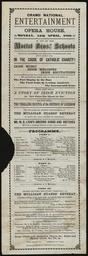 | Keywords: text document monochrome An arrangement of text. Items to be performed included: A story of Irish eviction, or "How Father Dan gained the day"; the thrilling recital of the defence of Lucknow; The Mulligan Guards' retreat; Mr W D Lyon's amusing songs and sketches. Performers also included: fifty pupils of Marist Brothers Schools, Mr E J Hill, Miss McCarthy, Mrs Walsh, Miss Katherine Hardy, Mr Prouse, Mr S Ross, Messrs Connolly and E Dunne, Mr W D Lyon, Misses Ross and Jacomb, Mr F W Haybittle. The full orchestra was conducted by Mr J B Connolly. The boys were drilled by Mr W Naughton. The committee included: Messrs D Walsh, J Brennan, J O'Sullivan, Hyland, Mahoney, S Ross, B LArkin, W Naughton, Dennehy and O'Driscoll. Quantity: 1 b&w art print(s) on poster. Physical Description: Letterpress on poster 420 x 142 mm. 396 x 172 mm. Evening Post (Wellington, N.Z.). Grand national entertainment. Opera House, Monday, 14th April, 1890, in aid of the Marist Bros.' Schools. The most interesting and enjoyable entertainment ever given in this city, in the cause of Catholic charity! Irish music, Irish melodies, Irish recitations. Printed at the Evening Post office, Willis-Street, Wellington. [1890].. Ref: Eph-C-VARIETY-1890-01. Alexander Turnbull Library, Wellington, New Zealand. natlib.govt.nz/records/23119675 An arrangement of text. Items to be performed included: A story of Irish eviction, or "How Father Dan gained the day"; the thrilling recital of the defence of Lucknow; The Mulligan Guards' retreat; Mr W D Lyon's amusing songs and sketches. Performers also included: fifty pupils of Marist Brothers Schools, Mr E J Hill, Miss McCarthy, Mrs Walsh, Miss Katherine Hardy, Mr Prouse, Mr S Ross, Messrs Connolly and E Dunne, Mr W D Lyon, Misses Ross and Jacomb, Mr F W Haybittle. The full orchestra was conducted by Mr J B Connolly. The boys were drilled by Mr W Naughton. The committee included: Messrs D Walsh, J Brennan, J O'Sullivan, Hyland, Mahoney, S Ross, B LArkin, W Naughton, Dennehy and O'Driscoll. Quantity: 1 b&w art print(s) on poster. Physical Description: Letterpress on poster 420 x 142 mm. 396 x 172 mm. Evening Post (Wellington, N.Z.). Grand national entertainment. Opera House, Monday, 14th April, 1890, in aid of the Marist Bros.' Schools. The most interesting and enjoyable entertainment ever given in this city, in the cause of Catholic charity! Irish music, Irish melodies, Irish recitations. Printed at the Evening Post office, Willis-Street, Wellington. [1890].. Ref: Eph-C-VARIETY-1890-01. Alexander Turnbull Library, Wellington, New Zealand. natlib.govt.nz/records/23119675 |