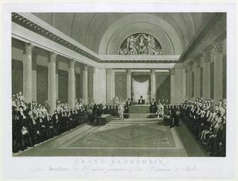 Keywords: Grand Sanhédrin des Israélites de l'Empire français et du royaume d'Italie.jpg he מושב הסנהדרין ש פריז בראש יושב הרב יוסף דוד זינצהיי 1800 1827 ark /12148/btv1b6946924b Damane-Démartrais Michel François 1763-1827 PD-old-70-1923 Uploaded with UploadWizard David Sintzheim |