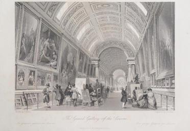 | Keywords: Grande Galerie Louvre by Thomas Allom full.jpg Artwork author info draughtsman Thomas Allom m author info engraver J B Allen m Interior view of the Great Gallery at the Louvre with tourists and painters Published by Fisher Son Co London and Paris Vue de l'intérieur de la grande galerie du Louvre fréquentée par des touristes et des peintres Gravure publiée par Fisher Fils Co Londres et Paris Drawn by T Allom en Engraved by J B Allen en The Grand Gallery of the Louvre en La grande galerie du Louvre fr Die grosze Gallerie zu Louvre de ca 1844 steel engraving cm 18 1 12 3 Similar etching 3420900 object history credit line accession number Marie-Lan Nguyen 2012 PD-old-100-1923 other versions <gallery> File Grande Galerie Louvre by Thomas Allom jpg </gallery> Historical images of the Grande Galerie Louvre room Thomas Allom 1844 engravings 1844 in Paris Engravings of buildings in Paris History of the Musée du Louvre Location not applicable Taken with Nikon D800E Taken with Sigma 70mm F2 8 EX DG Macro 1840s interiors in art James Baylie Allen |