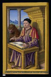 | Keywords: Grandes Heures Anne de Bretagne Saint Marc.jpg Saint Marc l'évangéliste miniature extraite des Grandes Heures d'Anne de Bretagne Reine de France 1477-1514 Mark the Evangelist miniature from the Grandes Heures of Anne of Brittany Queen consort of France 1477-1514 1503-1508 for work 2013-02-08 17 00 51 for upload ARK-BNF lien/link http //gallica bnf fr/ark /12148/btv1b52500984v/f57 item ici/here Creator Jean Bourdichon Upload stitching and restorations by Jebulon multiple image left horizontal 70 Grandes Heures Anne de Bretagne Saint Jean jpg St John St John Grandes Heures Anne de Bretagne Saint Luc jpg St Luke St Luke Grandes Heures Anne de Bretagne Saint Matthieu jpg St Matthew St Matthew This is a stitching of 247 pictures Preparation rotation frame scale and restoration colors levels removing tears some spots and dust with GIMP Assessments 1 The Four Evangelists in Les Grandes Heures d'Anne de Bretagne PD-old-100 The Four Evangelists in Les Grandes Heures d Anne de Bretagne The Four Evangelists in Les Grandes Heures d'Anne de Bretagne 21 18 17 February 2013 UTC The Four Evangelists in Les Grandes Heures d'Anne de Bretagne Uploaded with UploadWizard Grandes Heures d'Anne de Bretagne Miniatures of Saint Mark Paintings of lion of Saint Mark Paintings of men with books Paintings of sitting men Paintings of saints writing 1500s paintings from France People with lions in art Renaissance paintings of saints Featured pictures from Bibliothèque nationale de France Featured pictures by Jebulon |