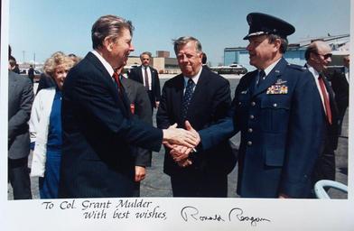 | Keywords: Grant Mulder meeting with Ronald Reagan 3.jpg Ronald Reagan to O'Hare Airforce base 2012-06-23 United States Airforce Department of Public Relations United States Airforce PD-USGov Uploaded with UploadWizard Ronald Reagan shaking hands Taken with Motorola Photon 4G |