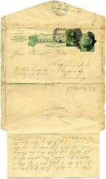 | Keywords: GrantLettersheet1886.jpg en 1886 letter sheet used from Chicago to Germany in 1888 with U S Grant depicted on 2c denominated indicium and George Washington illustrated on additional 2c postage stamp issued in 1887 U S government letter sheet 1886 United States Post Office Department 1886 This United States postage stamp was created pre-1978 and is therefore in the public domain PD-USGov Stamps of the United States 1881-1890 Postal stationery of the United States | ||||