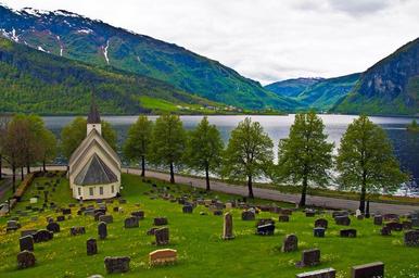 Keywords: outdoor landscape field grassland Granvin Church Granvin Church