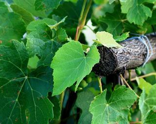 Keywords: grape vine leaves green vineyard pole wooden
