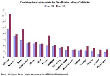 | Keywords: Graph evol pop etat USA 1980-2007.svg fr Graphique représentant la population des premiers états des Etats-Unis entre 1980 et 2007 en millions d'habitants Source http //www census gov/prod/2008pubs/09statab/pop pdf U S Census Bureau 2009 Own Urban 2009-04-26 Demographic charts of the United States |