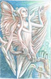 Keywords: graphics watercolor watercolor pencils mythology girl woman-bird fantastic bird sirin song joy hope illustration hands figure from the hand wings decorative