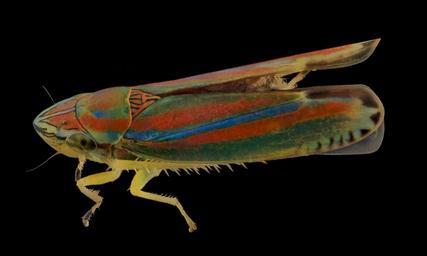 | Keywords: bug bugs animal animals animalia arthropod arthropods arthropoda insect insects insecta hopper hoppers hemiptera hemipteran hemipterans auchenorrhyncha cicadoidea leafhopper leafhoppers cicadellidae cicadellinae sharpshooter sharpshooters cicadellini graphocephala graphocephala versuta graphocephalaversuta taxonomy:binomial=graphocephala versuta taxonomy:binomial=graphocephalaversuta usgsbiml black background Graphocephala versuta - A beautiful multiculored, but minute leafhopper, here captured and photographed in Upper Marlboro, Maryland Graphocephala versuta - A beautiful multiculored, but minute leafhopper, here captured and photographed in Upper Marlboro, Maryland |