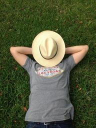 Keywords: grass summer nap outdoor field green sunny day sunlight people man hat young carefree vegas adult male white nature sun happy fun park