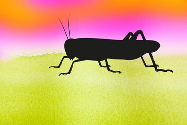 Keywords: grasshopper graphically insect nature animal watercolor tusche indian ink wet painting technique soluble in water not opaque color image color sketch green pink orange cheerful serene summer fund background course
