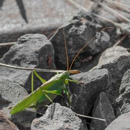 Keywords: grasshopper insect green close gravel stones stones