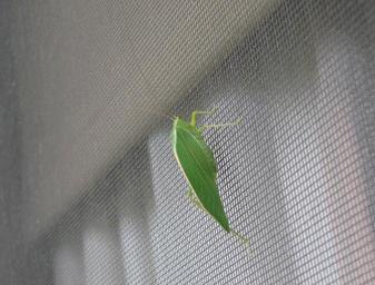 Keywords: grasshopper insects bug fly green antenna resting wall nature