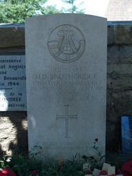 Keywords: Grave Den Brotheridge.JPG en Grave Den Brotheridge at Ranville War Cemetery nl Grafsteen van Den Brotheridge op de militaire begraafplaats van Ranville own DennisPeeters Ranville Churchyard