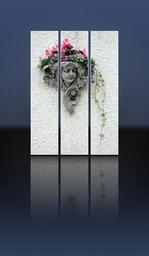 Keywords: grave stone tomb stone girl woman head stone decorative flowers wall face casting grey reflections tryptic
