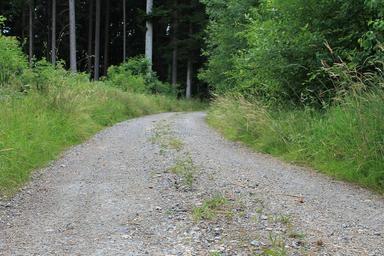 Keywords: gravel road forest path away pebble forest nature gravel green dirt track promenade commercial way
