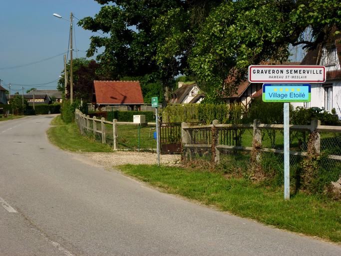 Keywords: graveron-semerville france village road fence sign city limits trees summer spring nature outside