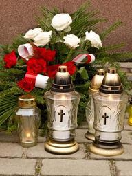 Keywords: graveyard lanterns cemetery flowers bouquet religious christianity candle roses memento remembrance commemoration