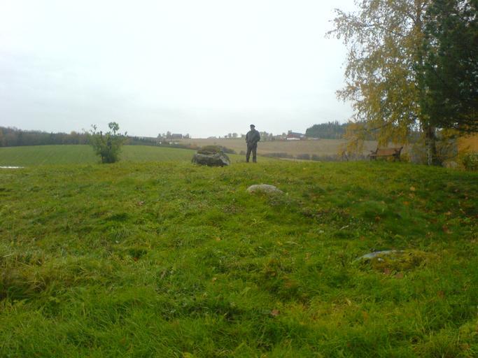 Keywords: Gravhaug steinvik skatval.JPG A burial mound in the village Skatval in Norway The stone on the top of it is placed there later Own 2007-10-14 Erik Fløan Steinvik Skatval Burial mounds in Norway