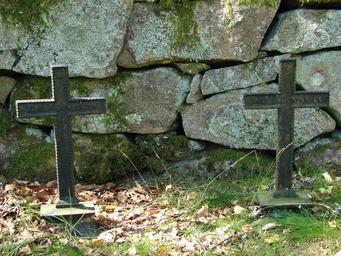 Keywords: Gravkors (Gundersen).JPG Små gravkors over Karl og Anette Gundersen Solum Kirkes kirkegård Telemark own 2012-08 Orf3us Solum kirkegård