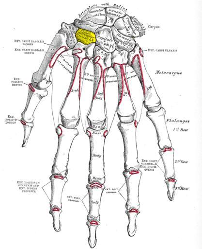 Keywords: Gray220 - Trapezoid bone.png en Bones of the left hand Dorsal surface Trapezoid bone shown in yellow 小菱形骨(しょうりょうけいこつ) 黄色で示す Other fields 1 Information field Ucfirst Plate 220 before 1858 Henry Gray Anatomy of the Human Body See Book section below 220 Retouched picture Highlights Gray220 png Creator Henry Vandyke Carter Book Gray's Anatomy PD-old-100-1923 Gray's Anatomy plates 0220 Trapezoid bone |