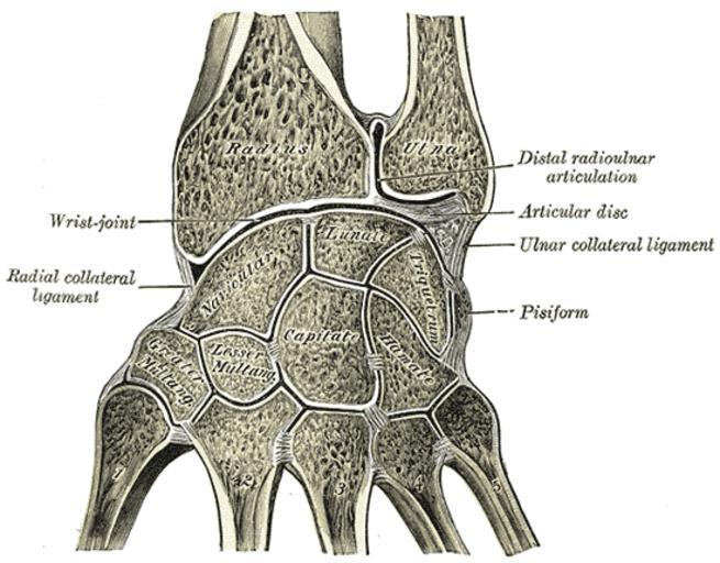 Keywords: Gray336.png Vertical section through the articulations at the wrist showing the synovial cavities Other fields 1 Information field Ucfirst Plate 336 before 1858 Henry Gray Anatomy of the Human Body See Book section below 336 Creator Henry Vandyke Carter Book Gray's Anatomy PD-old-100-1923 Gray's Anatomy plates 0336 Wrists Joints Human ulna Radius bone Human carpal bones Metacarpus Carpus Trapezium bone Trapezoid bone Pisiform bone Triquetral bone Scaphoid bone Capitate bone Hamate bone Ulna Lunate bone Plane joints Short bones |