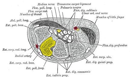 | Keywords: Gray422 - Trapezoid bone.png en Transverse section across the wrist Palm on top thumb on left Trapezoid bone shown in yellow labelled as Lesser Multang Other fields 1 Information field Ucfirst Plate 422 before 1858 Henry Gray Anatomy of the Human Body See Book section below 422 Creator Henry Vandyke Carter thumb left Original Book Gray's Anatomy Gray's Anatomy plates Pd-old-100-1923 Trapezoid bone | ||||