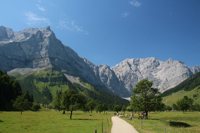 Keywords: great ahornboden austria meadow landscape mountains alpine green hiking