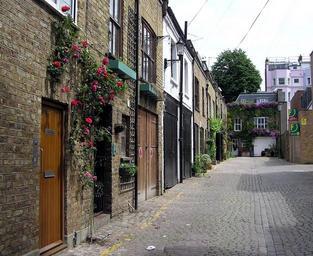 Keywords: great britain england town alley old town passage path footpath cobblestone stone buildings structure apartments architecture