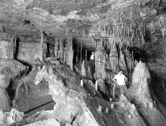 | Keywords: Great Onyx Cave Kentucky.jpg Great Onyx Cave 1925 Great Onyx Cave is located in Mammoth Cave National Park Kentucky United States Geological Survey Photographic Library http //libraryphoto cr usgs gov/cgi-bin/show_picture cgi ID ID 20Lee 20W T 202739 United States Geological Survey W T Lee 1925 Template PD-USGov-Interior-USGS 37 13 7 N 86 4 44 W As of 2011 CRF has mapped a little over 4 miles of passage PD-USGov Great Onyx Cave Draperies Flowstones Tubular stalactites Stalactites Stalagmites Columns speleology Caving in the United States |