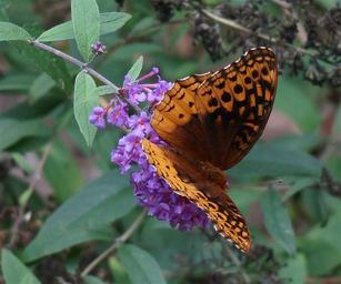 Keywords: great spangled fritillary fritillary butterfly orange insect animal fauna nature garden butterfly bush flower blossom bloom plant shrub purple violet flora