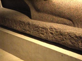 Keywords: Great Sphinx Tanis Louvre A23 - detail.jpg Photo of the pedestal Neithsabes own Great Sphynx - Louvre A23