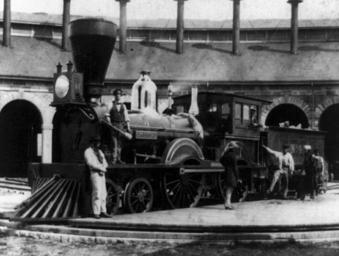 | Keywords: Great Western Railway of Canada 4-4-0.jpg Great Western Railway of Canada 4-4-0 steam locomotive Spitfire A good example of an early broad-gauge inside-cylindered short-trucked 4-4-0 of the period http //hdl loc gov/loc pnp/cph 3b39963 s 1850 Author copyright-expired Steam locomotives of Canada 4-4-0 locomotives Rail transport turntables in Canada Great Western Railway Ontario Roundhouses in Canada PD-old | ||||
