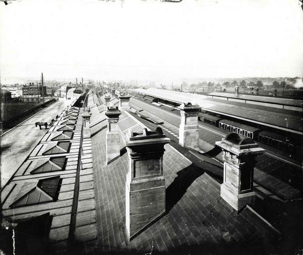 | Keywords: Great Western Railway Station, Reading, c. 1900.jpg en Roof-top view of the Great Western Railway Station Reading looking westwards c 1900 Two trains are visible at the platforms In the distance in Greyfriars Road the premises of Patience Son and Company builders can be seen on one side of the road with the Tudor Arms pub later the Malt House before its front was cement rendered on the other side In Station Hill the sign of Beecroft and Son printers is visible 1900-1909 photograph by Walton Adams 1900 http //readingimages epixtech co uk/extra/test3 html Reading Borough Libraries Creator Walton Adams PD-old-70 Reading railway station 1900 Reading in the 1900s 1900 in rail transport in the United Kingdom 1900 in England 1900 photographs Walton Adams |