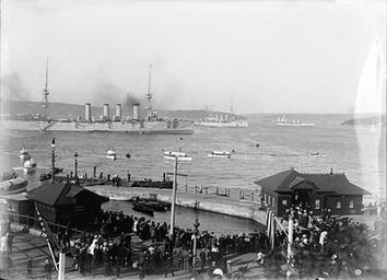 | Keywords: archives state records nsw staterecordsnsw newsouthwales blackandwhite great white fleet greatwhitefleet american fleet americanfleet us navy usnavy peace mission peacemission battleship people sightseers monochrome black and white 'Spectators viewing the US Navy's Great White Fleet in Sydney Harbour - HMS 'Powerful", Royal Navy Australian Station in foreground". Glass Plate Negatives Dated: c. 20 August 1908 Digital ID: 18526_a024_000015 Rights: www.records.nsw.gov.au/about-us/rights-and-permissions We'd love to hear from you if you use our photos. » See more images and records relating to the US Fleet visit on our website Many other photos in our collection are available to view and browse on our website using Photo Investigator. 'Spectators viewing the US Navy's Great White Fleet in Sydney Harbour - HMS 'Powerful", Royal Navy Australian Station in foreground". Glass Plate Negatives Dated: c. 20 August 1908 Digital ID: 18526_a024_000015 Rights: www.records.nsw.gov.au/about-us/rights-and-permissions We'd love to hear from you if you use our photos. ยป See more images and records relating to the US Fleet visit on our website Many other photos in our collection are available to view and browse on our website using Photo Investigator. |