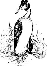 Keywords: grebe duck bird standing straight feathers species fauna great-crested