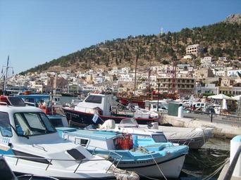 Keywords: greece dodecanese boat blue sea port water wooden boat mediterranean ocean holiday summer rest calm mediterranean sea city