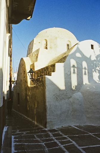 Keywords: greece ios greek island chapel church morning sun somaia cyclades hispanic bell tower architecture white blue holiday scan kb dia