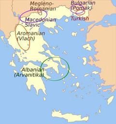 | Keywords: Greece linguistic minorities simplified.svg en Extremely simplified representation of approximate location of the most important traditional linguistic minority groups in Greece For those who distrust the level of detail shown in Image Greece linguistic minorities svg Shows w Arvanites in w Attica and surroundings w Vlachs in the w Pindus mountains w Macedonian language in western Macedonia and Bulgarian Pomaks and Turkish-speakers in Thrace Following an idea by en User Kapnisma Own Future Perfect at Sunrise 2008-10-06 Linguistic maps of Greece Minorities |