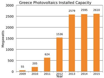| Keywords: Greece Photovoltaics Installed Capacity.svg translate yes en Installed photovoltaics in Greece from 2009 to 2015 Source http //www iea-pvps org/fileadmin/dam/public/report/PICS/IEA-PVPS_-__A_Snapshot_of_Global_PV_-_1992-2015_-_Final_2_02 pdf IEA-PVPS 2014-12-10 own Delphi234 other versions cc-zero Solar energy in Greece Photovoltaic power statistics |