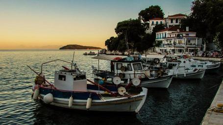 Keywords: greece skiathos chora sunset afternoon port boats island greek sporades summer mediterranean scenic tourism