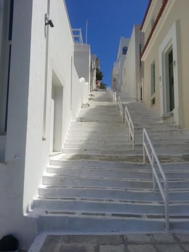 Keywords: greece stairs white houses rise island village blue summer holiday
