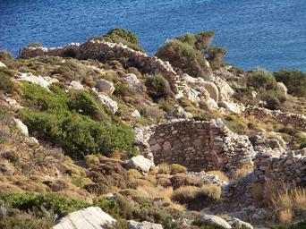 Keywords: greece stones rock old architecture antique stone wall history mountain landscape leave overgrown