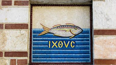 Keywords: greece volos ayios nikolaos cathedral mosaic exterior symbol church orthodox