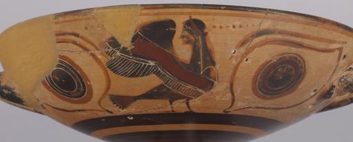 | Keywords: Greek - Black-figure Kylix with Sirens - Walters 4837 - Detail B.jpg Homer does not describe the physical appearance of the Sirens but their tantalizing beauty and alluring song captured the interest of commentators throughout antiquity The Sirens are depicted as composite creatures as early as the 8th century BC a motif perhaps derived from Egyptian sources The earliest types such as those seen here are shown simply with women's heads and birds' bodies without arms or hands Sirens occur not only in narrative scenes with Odysseus and his men but also as decorative motifs as do sphinxes ; during the Classical period they come to have associations with funerary iconography The two-handled vase shown here is a type of kylix known as an eye cup which would resemble a mask when raised to the lips during the symposium The simple black-slip interior reveals several small holes around the handles that were used for repairs in antiquity On the exterior a similar composition dominates each side of the vase in a single band Between two large eyes stands a siren; on one side the siren faces frontally to the right on the other side she turns her head looking back Their full wings are simply drawn with bands of added red pigment Beneath their feet runs a simple ground line of black glaze Above each siren are traces of an inscription perhaps the signature of the potter or painter though it is no longer readable century 6 BC terracotta H 4 1/2 x W 11 13/16 x Diam at rim 9 1/16 in 11 5 x 30 x 23 cm accession number 48 37 16991 Don Marcello Massarenti Collection Rome before 1897 mode of acquisition unknown Henry Walters city Baltimore Walters Art Museum Henry Walters Acquired by Henry Walters with the Massarenti Collection 1902 Things With Wings Mythological Figures in Ancient Greek Art The Walters Art Museum Baltimore 2005-2006 Things With Wings Mythological Figures in Ancient Greek Art Ward Museum Salisbury 2009 Heroes Mortals and Myths in Ancient Greece The Walters Art Museum Baltimore; Frist Center for the Visual Arts Nashville; San Diego Museum Of Art San Diego; Alexander S Onassis Public Benefit Foundation USA New York 2009-2011 place of origin Attica Greece Walters Art Museum license Eye-cups Ancient Greek black-figure pottery in the Walters Art Museum Art from Greece Sirens in ancient Greek art Media contributed by the Walters Art Museum needs category review |