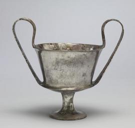 | Keywords: Greek - Kantharos - Walters 57934 - Side B.jpg The kantharos a type of drinking cup with high handles was the attribute of Dionysus century 5 BC Classical silver with handles cm 20 21 7 13 92 h x w x diam accession number 57 934 37680 Found in Greece Sambon date and mode of acquisition unknown Henry Walters Baltimore 1926 by purchase Walters Art Museum Henry Walters Acquired by Henry Walters 1926 Silver for the Gods Eight Hundred Years of Greek and Roman Silver The Nelson-Atkins Museum of Art Kansas City; Kimbell Art Museum Fort Worth; Toledo Museum of Art Toledo 1977-1978 place of origin Greece Walters Art Museum license Ancient Greek art in the Walters Art Museum Art from Greece Media contributed by the Walters Art Museum needs category review |